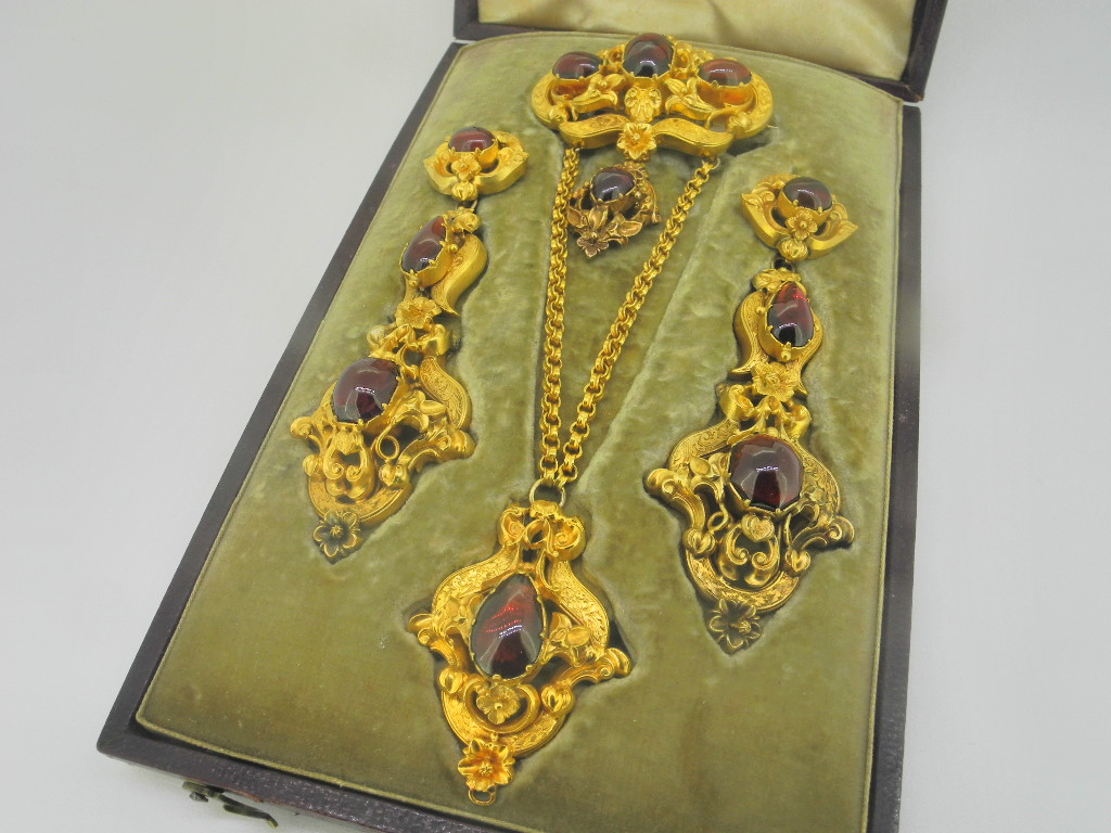 5786 Spilla e Orecchini Granati